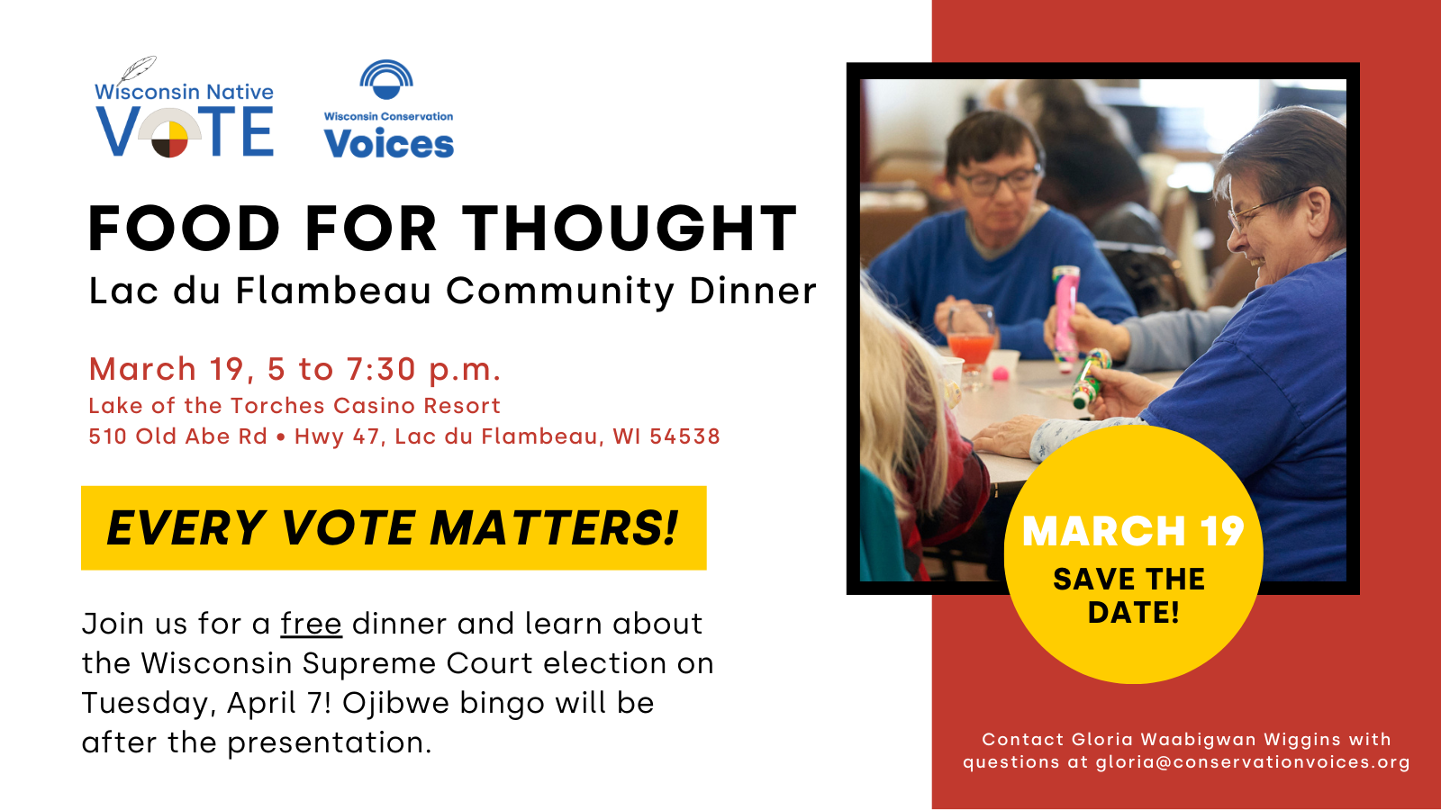 Learn about the Wisconsin Supreme Court election on Tuesday, April 7! Ojibwe bingo will be after the presentation.